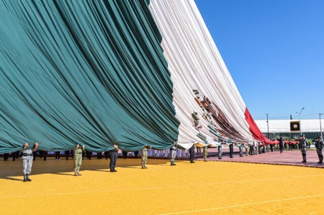 La titular del Ejecutivo dijo que con este acto se rinden honores al símbolo más alto de la nación: “Nuestra bandera, en cuyos colores vive nuestra historia, así como el compromiso de cada generación de entregar un México mejor al que recibió”.
