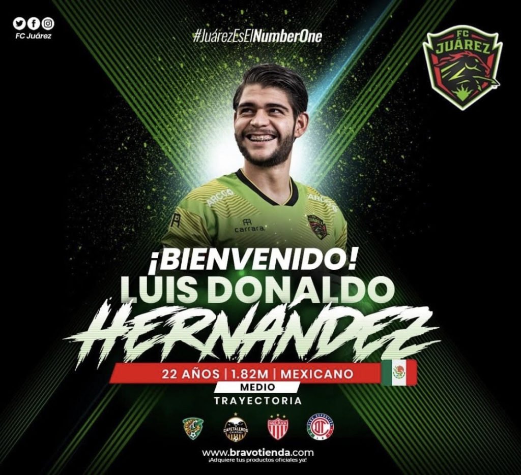 Ramón Armendáriz.– Los Bravos del FC Juárez dieron a conocer oficialmente la incorporación de dos refuerzos mas rumbo al Torneo Apertura 2020 de la Liga MX. Se trata del mediocampista Luis Donaldo Hernández y él portero Felipe López.