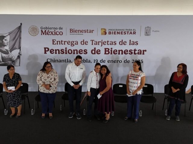 La Jefa del Ejecutivo Federal encabezó en Chinantla la entrega de 175 tarjetas del Banco del Bienestar a beneficiarias de la Pensión Mujeres Bienestar, apoyo que en todo el estado de Puebla se otorgará a 45 mil 818 mujeres de 63 y 64 años; así como de 270 tarjetas para la Pensión para el Bienestar de las Personas Adultas Mayores que a nivel estatal será entregado en 2025 a 32 mil 360 personas de 65 años y más; apoyos que, aseguró, son un derecho del pueblo de México, al igual que la educación y la salud.