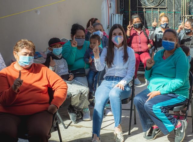 Durante la mañana se reunió con mujeres de la colonia Colinas del desierto, quienes se mostraron motivadas en participar y apoyar a que sean mujeres la que se encuentren en los distintos cargos del gobierno y pidieron se gestionen programas en pro de las madres solteras: despensas, estancias infantiles, trabajos, para poder salir adelante, además de exigir que se regrese el seguro popular para el bienestar familiar.