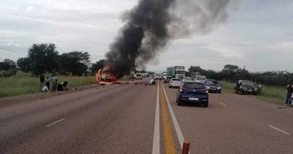 “Al parecer el conductor de la camioneta perdió el control del vehículo debido al estallido de un neumático y chocó de frente con un autobús Mercedes-Benz de 22 plazas”, dijo el portavoz del departamento, Mike Maringa.