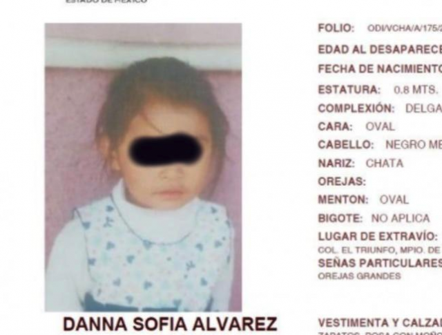 Estado de México.- Una bebé de dos años y siete meses de nombre Danna Sofía que era buscada en el estado de México finalmente fue encontrada, su mamá no recordaba dónde la dejó.
