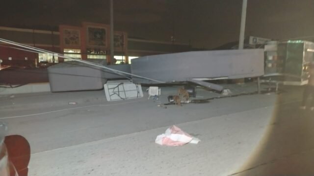 La Dirección General de Protección Civil informó que la tarde de ayer se registró la caída de un anuncio publicitario de un supermercado, luego de los fuertes vientos que se presentaron en la ciudad.