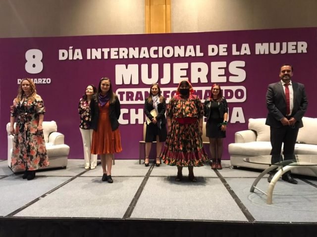 Paula Holguín, emprendedora rarámuri que emplea a 25 mujeres de su comunidad en su taller de costura, dejó claro que quiere vivir en un lugar libre de violencia; alzó la voz en español y en su lengua originaria, para exigir que sus hijas vayan a trabajar y a la escuela con libertad y alegría de vivir.