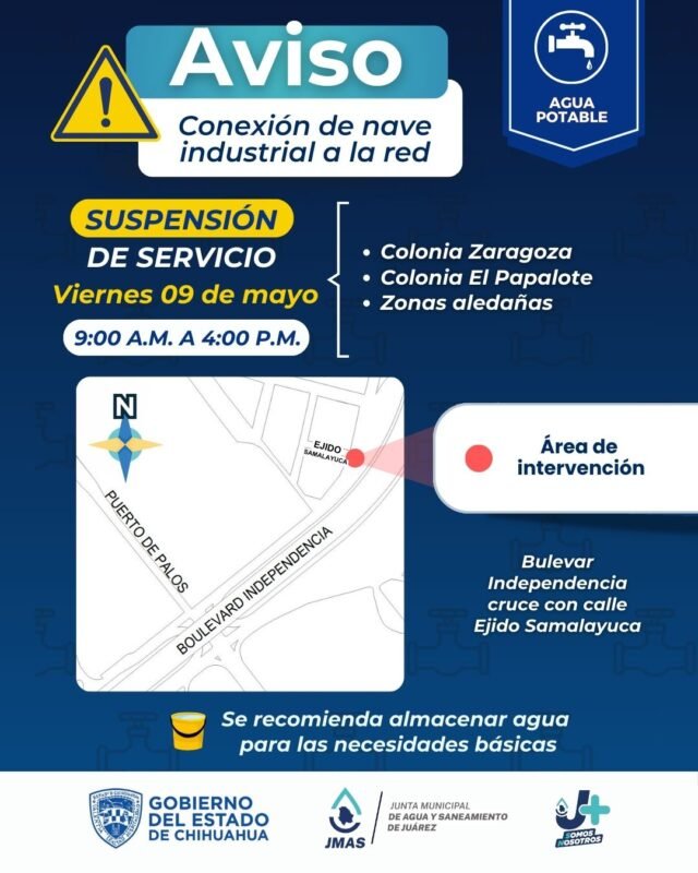 Para hacer estos trabajos, se impactará la prestación del servicio, entre las 9:00 y las 16:00 horas de mañana viernes, en las colonias Zaragoza, El Papalote y zonas aledañas.