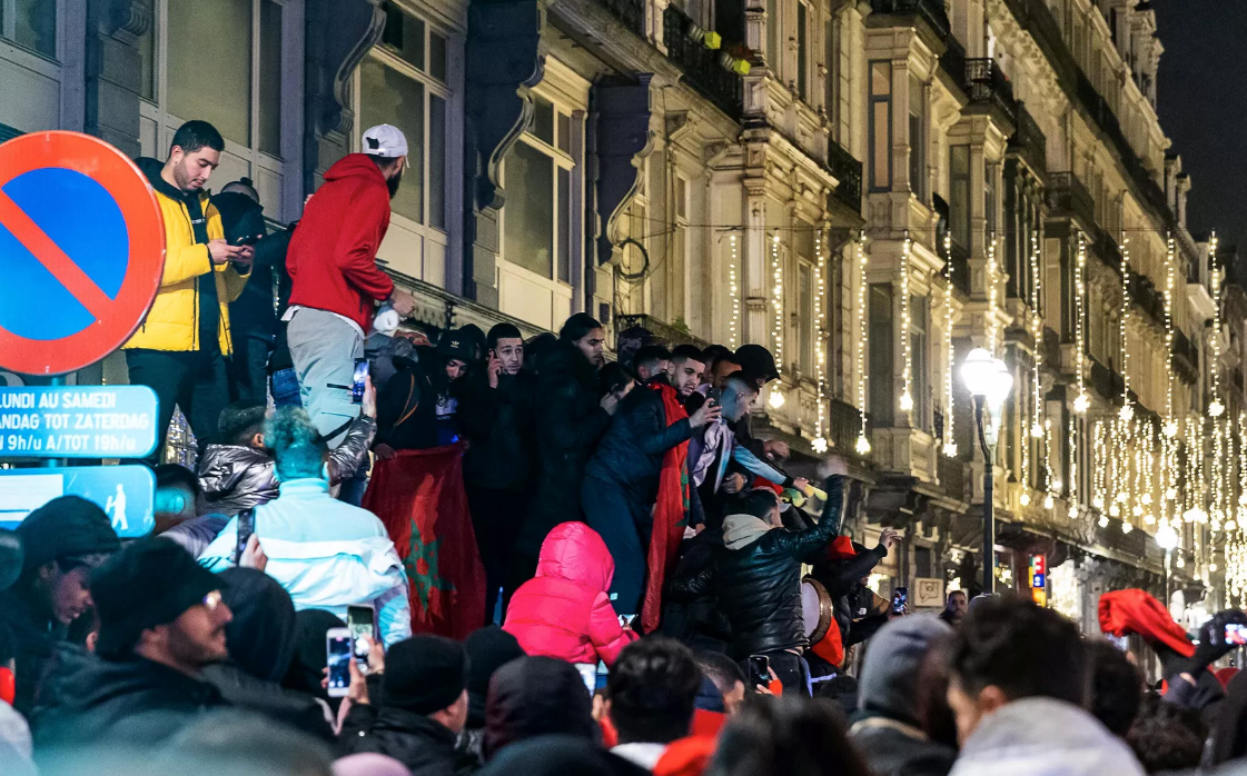Al término del partido, cientos de coches con banderas de Marruecos tomaron las calles de Bruselas, sede de una gran diáspora marroquí. Los hinchas se reunieron en la zona del Boulevard Lemonnier, rodeada por la policía que contaba con vehículos especiales.