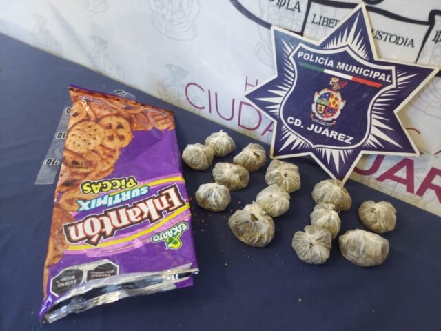 Al abordarlo para realizarle una inspección preventiva, se le encontró en el interior de una bolsa de comida chatarra, una bolsa de plástico con 13 envoltorios de marihuana con un peso de más de 50 gramos, procediendo al arresto de José G. U. de 35 años.