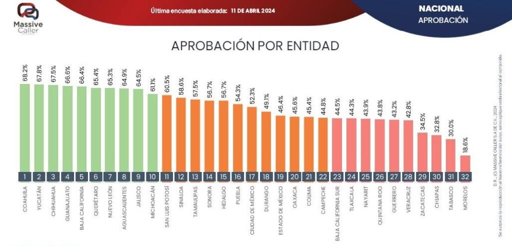 La gobernadora Maru Campos se consolidó entre los mandatarios mejor evaluados del país, al ubicarse en el Top 5 en todos los rubros de la medición mensual de gobernadores, realizada por la casa encuestadora Massive Caller.