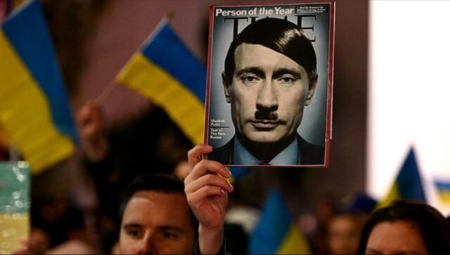 Miles de personas con banderas de Ucrania, Georgia y la Unión Europea, entre otras, se congregaron en Moscú, San Petersburgo y otras ciudades de Rusia para protestar contra Putin por el ataque militar a Ucrania. En pancartas comparan al presidente ruso con Hitler.