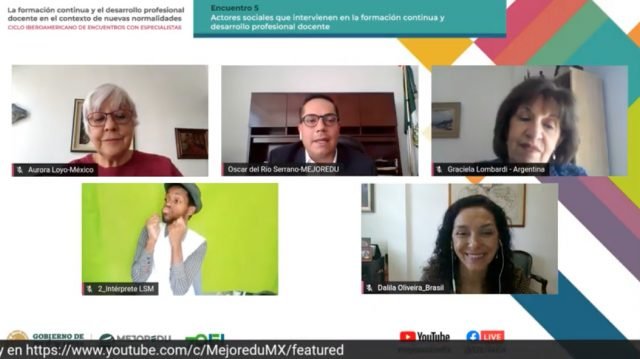 En el evento organizado por la Comisión Nacional para la Mejora Continua de la Educación (Mejoredu) y la Oficina en México de la Organización de Estados Iberoamericanos para la Educación, la Ciencia y la Cultura (OEI), Graciela Lombardi, licenciada en Ciencias de la Educación por la Universidad de Buenos Aires, destacó que la formación continua de los docentes debe pensarse a partir del derecho de los estudiantes a tener educación y aprender, la responsabilidad y derecho de los docentes, la responsabilidad de los actores de la formación continua y la responsabilidad del Estado.