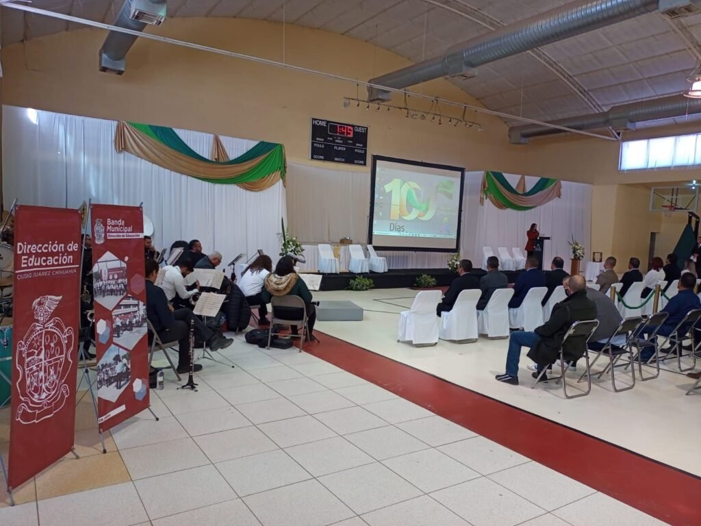 La Banda de Música Municipal de Ciudad Juárez participó en el informe de los primeros 100 días de gobierno del alcalde de Ahumada, Fabián Fourzán Trujillo.