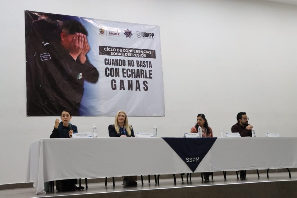 La directora de Salud Municipal, Daphne Patricia Santana Fernández, participó en el ciclo de conferencias “Cuando no basta con echarle ganas”, dirigido a personal de la Secretaría de Seguridad Pública Municipal y realizado en la Academia de Policía.