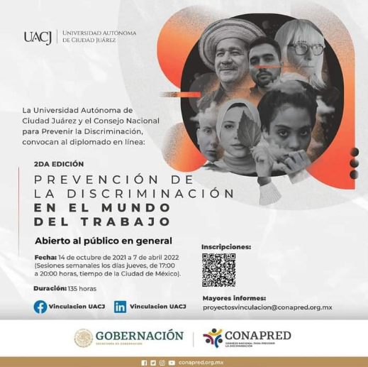 El Consejo Municipal para Prevenir la Discriminación (COMUPRED) participará en el diplomado de “Prevención de la Discriminación en el Mundo del Trabajo” que imparte la Universidad Autónoma de Ciudad Juárez (UACJ) en coordinación con el Consejo Nacional para Prevenir la Discriminación (CONAPRED), dio a conocer Ignacio Díaz Hinojos, Secretario Ejecutivo.