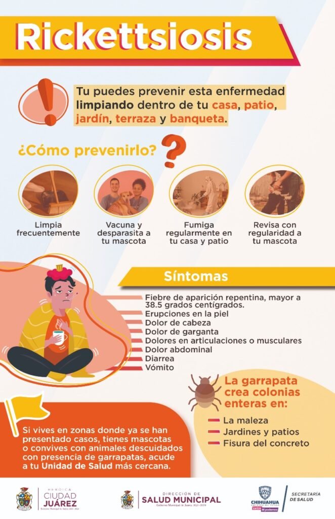 La Dirección de Salud del Gobierno Municipal, hizo un llamado a la ciudadanía para que acudan a consulta médica si presentan síntomas de la enfermedad por Rickettsia, la cual es transmitida a través de la mordedura de artrópodos como la garrapata.