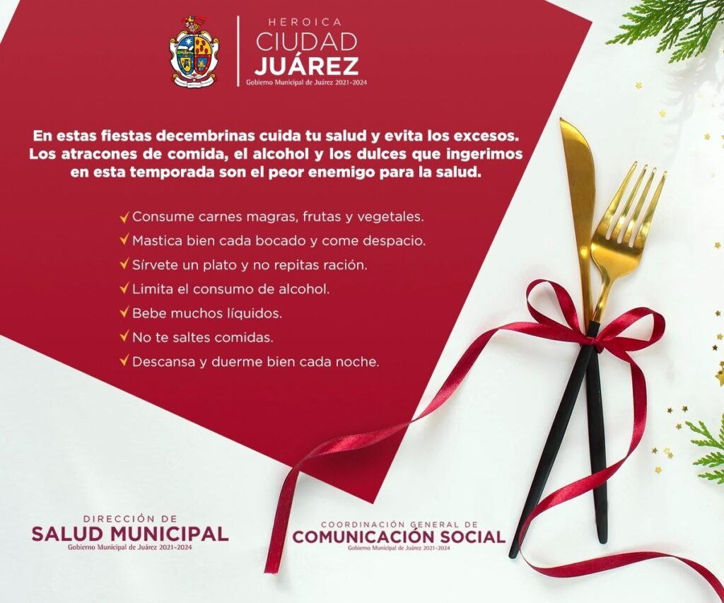 La directora de Salud Municipal, Daphne Santana Fernández, llamó a la comunidad a que en estas fiestas de fin de año no abusen en el consumo de alimentos y bebidas alcohólicas, además pidió protegerse de los cambios bruscos de temperatura.