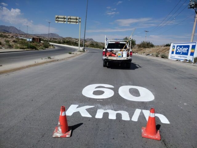 Personal del área de Control de Tráfico de esta dependencia, ha estado realizando trabajos de pintura de señalamientos sobre la carpeta asfáltica, debido a la extensión del tramo que comprende del Kilómetro 20, desde la carretera a Casas Grandes hasta la entrada de la colonia Anapra.