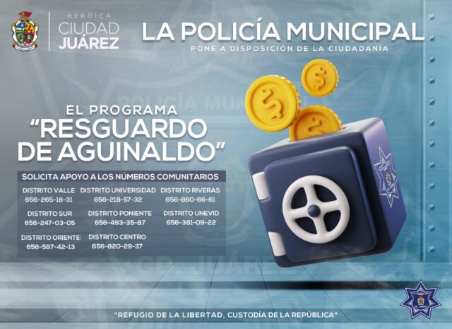 Debido a las fechas que se aproximan en las cuales los trabajadores recibirán beneficios económicos como aguinaldos y ahorros, la Secretaría de Seguridad Pública Municipal implementará un operativo especial de resguardo, para brindar seguridad durante el retiro de efectivo en las diferentes sucursales bancarias.