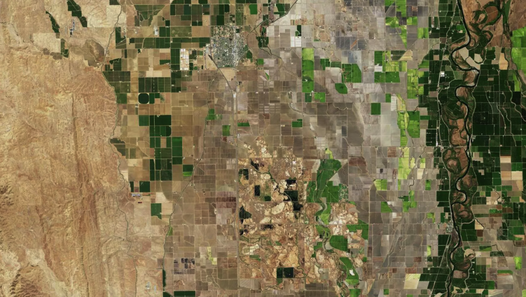 “Decenas de miles de acres de tierra cultivada que normalmente estarían verdes debido a que los granjeros los preparan para la cosecha están en cambio cafés y desocupados en 2022”, señaló tras comparar dos imágenes satelitales del territorio californiano correspondientes a los meses de septiembre de este año y de 2021.