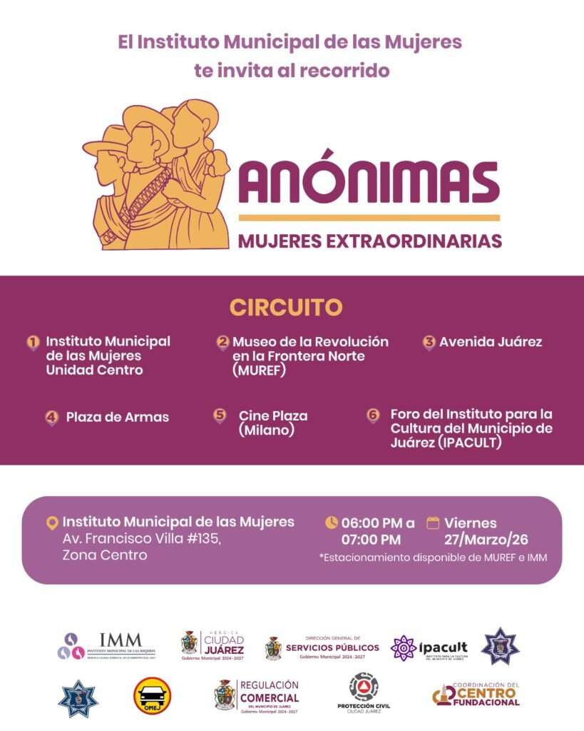 Quiñónez reiteró la invitación a la población en general para sumarse a esta actividad cultural que busca visibilizar las voces y experiencias de las mujeres en la ciudad. El recorrido saldrá a partir de las 18:00 horas del Instituto Municipal de las Mujeres, situado en Francisco Villa 135 en la Zona Centro.