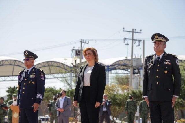 La Gobernadora Maru Campos Galván, tomó hoy Protesta de Bandera a 170 soldados del Servicio Militar Nacional (SMN), conscriptos Clase 2003, remisos y mujeres voluntarias, en acto cívico se celebró en la explanada del Parque El Palomar.