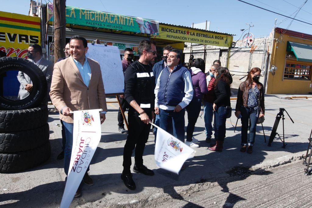 Con el objetivo de mejorar las condiciones de las vialidades en Ciudad Juárez, el Presidente Municipal Cruz Pérez Cuéllar, dio el banderazo de arranque a las obras de fresado y recarpeteo en el bulevar Óscar Flores.