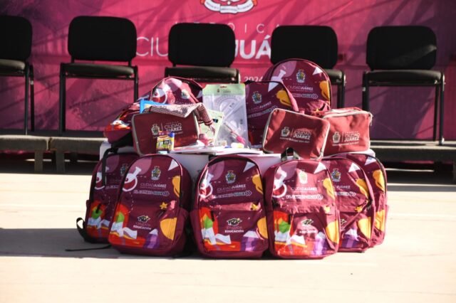 En tanto que los estudiantes de segundo grado de primaria hasta secundaria reciben mochila, cuadernos de cuadrícula grande y de raya, bolígrafos, lápices, sacapuntas, borradores y juegos de geometría.