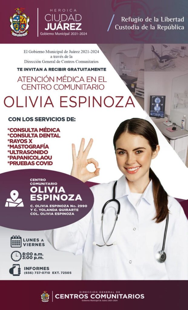Jesús Manuel García, director general de Centros Comunitarios, indicó que en el comunitario Olivia Espinoza, localizado en el cruce de las calles Olivia Espinoza y Yolanda Quirarte, se ofrecen múltiples servicios como consulta médica general, atención dental y aplicación de prueba Covid.