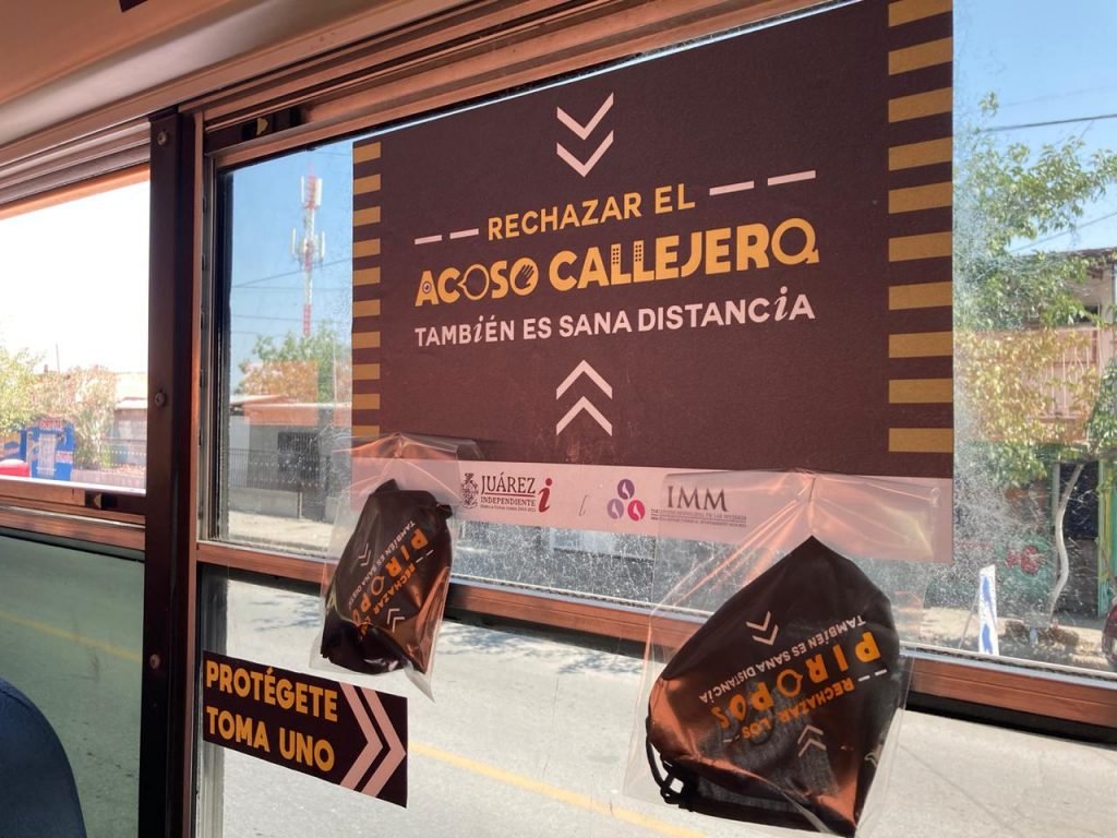 Detalló que en las unidades de transporte urbano que circulan por la zona centro se colocó información de la campaña, además de entregar cubrebocas con leyendas de rechazo al acoso sexual callejero.