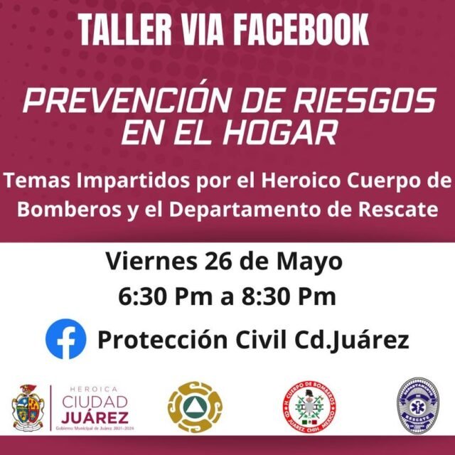 El curso se llevará a cabo este viernes 26 de mayo a partir de las 6:30 de la tarde y estará disponible a través de la página de Facebook de Protección Civil. Esta plataforma permitirá que los participantes puedan acceder al contenido de manera fácil y cómoda desde sus hogares.