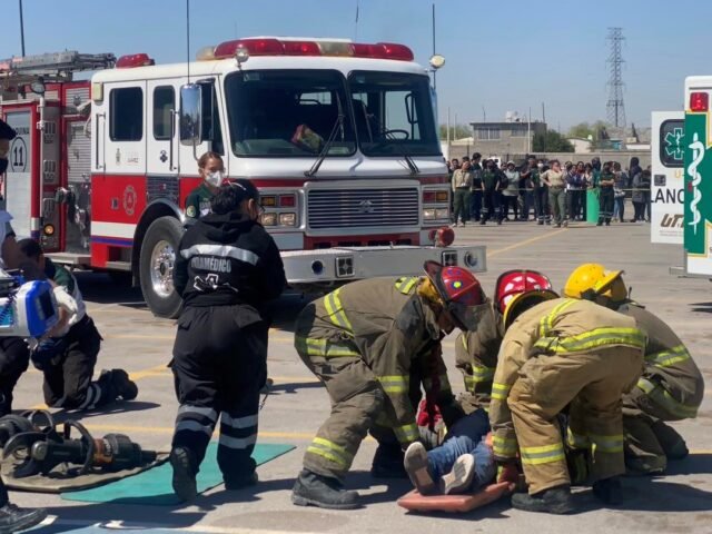 La Dirección General de Protección Civil, a través del Departamento de Bomberos, participó en un simulacro en las instalaciones de la Universidad Tecnológica de Ciudad Juárez, con la intención de concientizar a los estudiantes sobre el consumo de bebidas alcohólicas y conducir en estado de ebriedad.