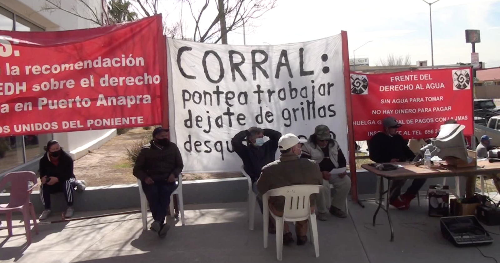 Vecinos de Lomas de Poleo y Anapra, reanudaron los plantones en contra el gobierno del estado por no tener agua potable y lo hicieron frente a las oficinas administrativas del gobierno del estado.