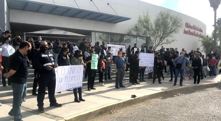 Decenas de propietarios y empleados de restaurantes y gimnasios que permanecen cerrados debido a las restricciones del semáforo rojo impuestas por Javier Corral en el estado, se manifestaron la mañana de este lunes frente a las oficinas del gobierno del estado conocidas como Pueblito Mexicano, para exigir que el mandatario estatal los deje trabajar en sus establecimientos.