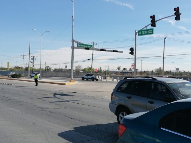 La Coordinación General de Seguridad Vial habilitó el cruce de la calle Pedro Meneses Hoyos y avenida Tecnológico, a un costado del Parque Central, luego de realizarse los trabajos de programación y sincronización de semáforos.