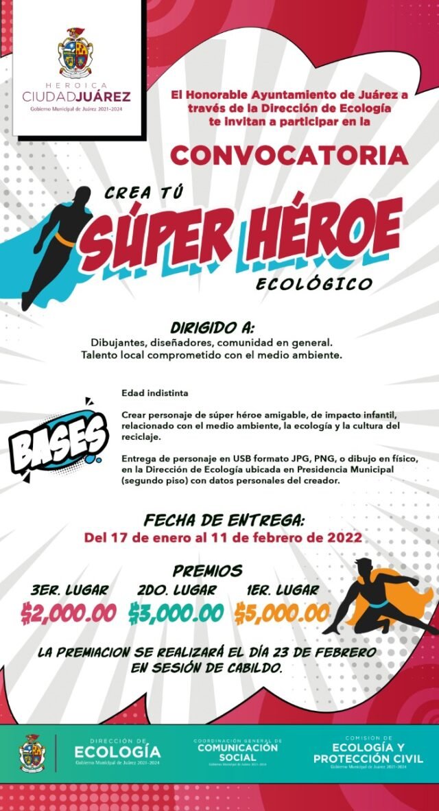 La Dirección de Ecología reitera la invitación a la comunidad para que participen en el concurso para crear un súper héroe ecológico, ya que solo faltan 10 días para que termine el plazo fijado en la convocatoria y con ello se inicie con la deliberación para seleccionar a los ganadores.