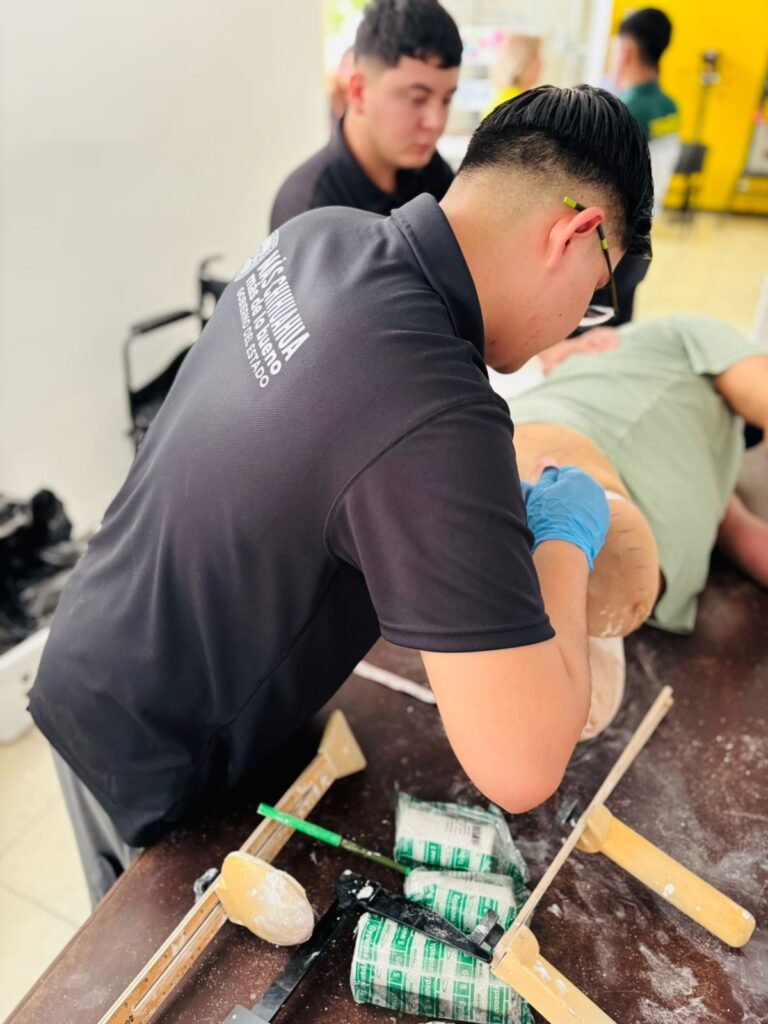 Durante la actividad, participaron como observadores alumnos de la Universidad Tecnológica de Ciudad Juárez (UTCJ), quienes conocieron el proceso de elaboración de prótesis como parte de su formación académica.