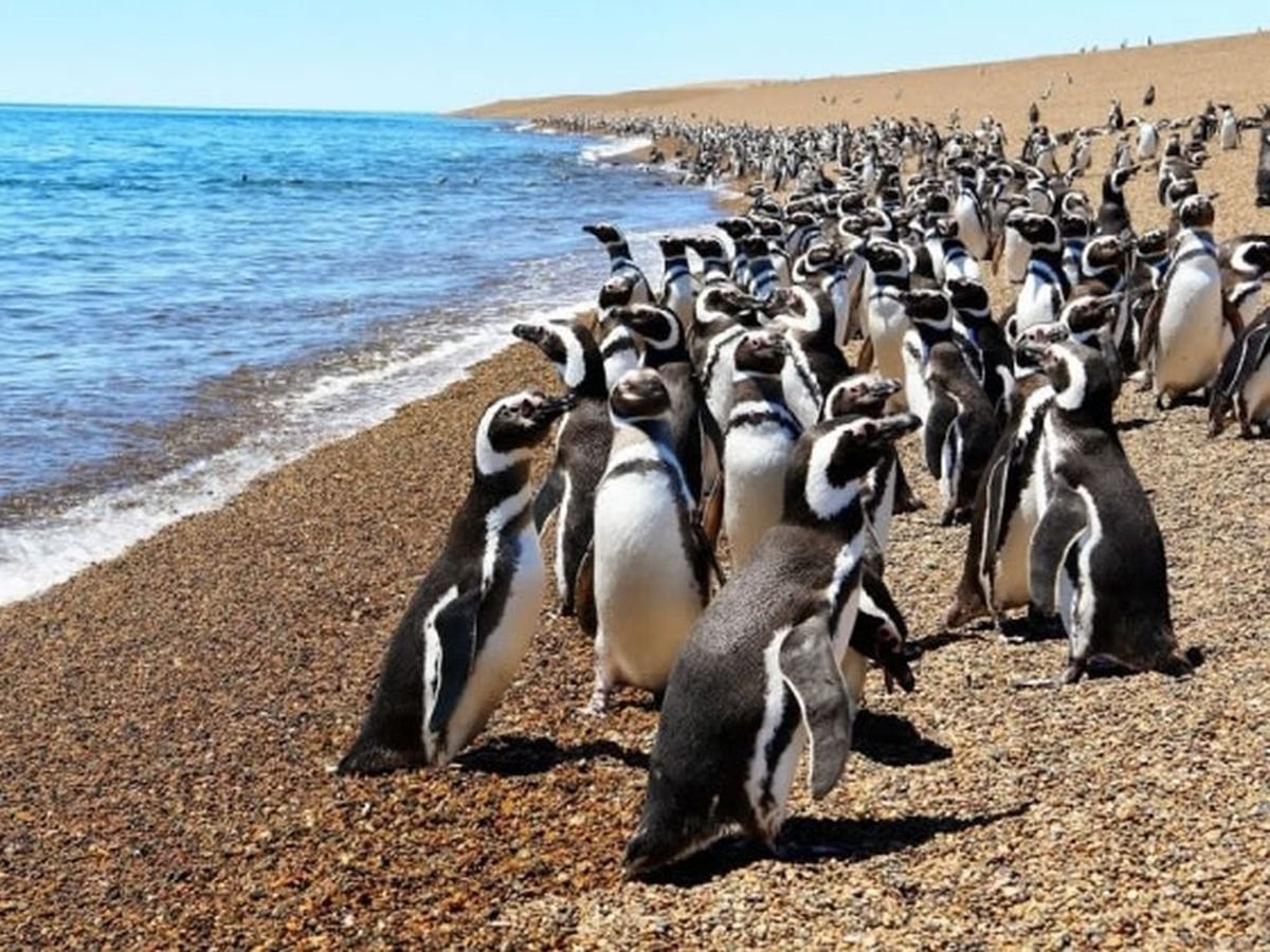 La reserva natural de Punta Tombo, operativa desde 1972, abarca 60 kilómetros de litoral costero y más de 31 mil hectáreas de superficie marina y alberga numerosas colonias continentales —de hasta 400 mil ejemplares— de cría del pingüino de Magallanes.
