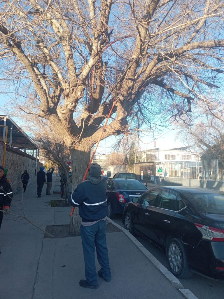 La Dirección de Parques y Jardines llevó a cabo trabajos de poda formativa de árboles en la calle Reyes Estrada, en el exterior del Instituto de Seguridad y Servicios Sociales de los Trabajadores del Estado (ISSSTE), como parte de las acciones preventivas para el mantenimiento del arbolado urbano.