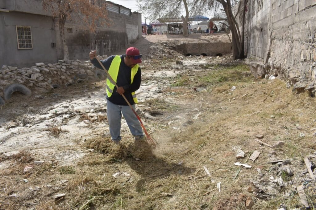 Personal de la Dirección de Limpia trabaja en un operativo de limpieza en el arroyo El Jarudo, ubicado sobre la calle Macheteros, dio a conocer Gibran Solís Kanahan, director de la dependencia.