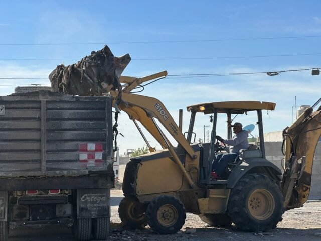 Cuadrillas de la Dirección de Limpia, vecinos de los fraccionamientos Arecas I y II y estudiantes de la Universidad Autónoma de Ciudad Juárez, participaron en un operativo de limpieza para retirar basura y tierra de arrastre que se concentraba en la calle Cedro San Pedro, la cual divide ambas etapas de la zona.