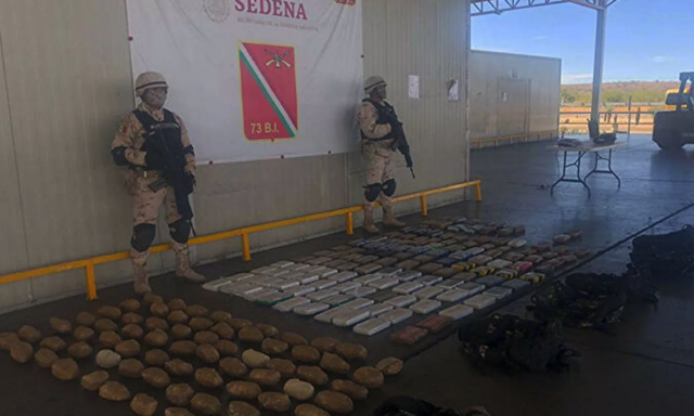 El aseguramiento se realizó este jueves 25 de noviembre en el municipio de Opodepe, Sonora. En el evento se decomisaron alrededor de 170 kilogramos de droga, de los cuales 105 corresponden a fentanilo.