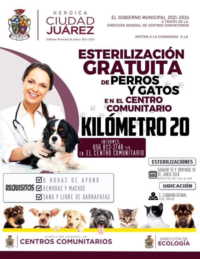 La jornada de esterilización se realizará en coordinación con la Dirección de Ecología en las instalaciones del Centro Comunitario del Kilómetro 20, ubicado sobre la calle Leonardo Bernal de la colonia Kilómetro 20.
