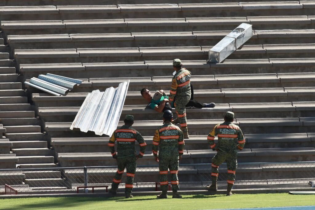 Se acondicionó una parte del estadio de fútbol Benito Juárez como hospital ambulante y en las gradas del mismo se proporciona ayuda a las personas que resultaron heridas luego del estremecimiento de la tierra.