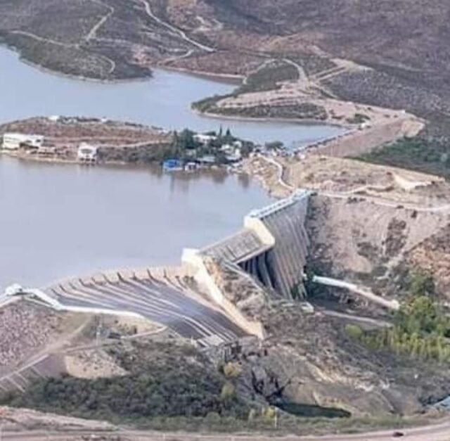 La presa “Abraham González”, en el municipio de Guerrero, tiene una capacidad de almacenamiento de 80 millones de metros cúbicos y se encuentra al 101.3% de su capacidad, por lo que tiene un vertido de 12.95 metros cúbicos por segundo.