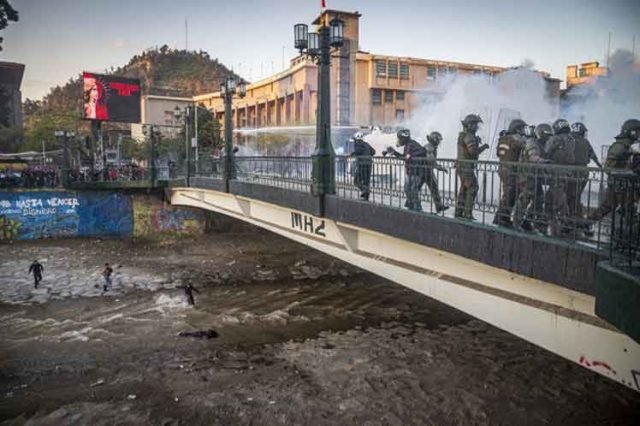 El viernes pasado, durante una protesta en las cercanías de la Plaza Baquedano, uno de puntos de encuentro en la capital chilena, un manifestante de 16 años cayó desde el puente Pío Nono al río Mapocho, a unos 7 metros de altura, empujado por un oficial de Carabineros de Chile, según informó la Justicia del país.