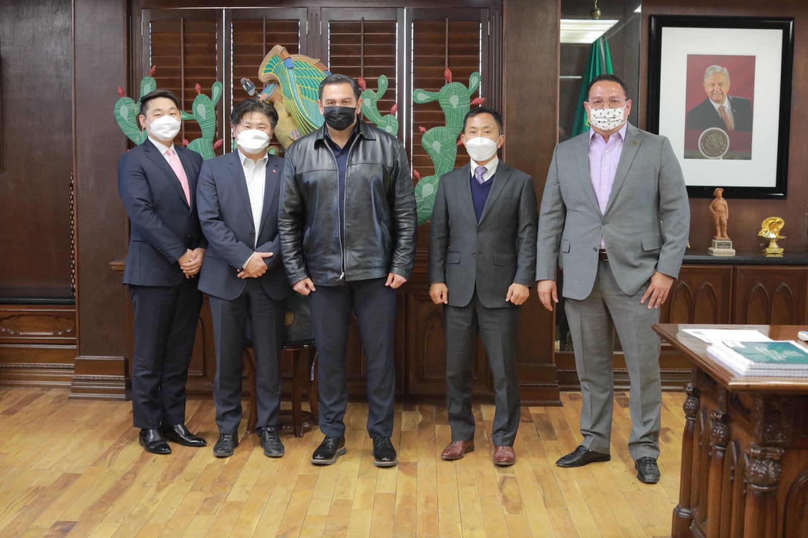 El presidente municipal, Cruz Pérez Cuéllar, recibió en su despacho la visita de un grupo de inversionistas coreanos.