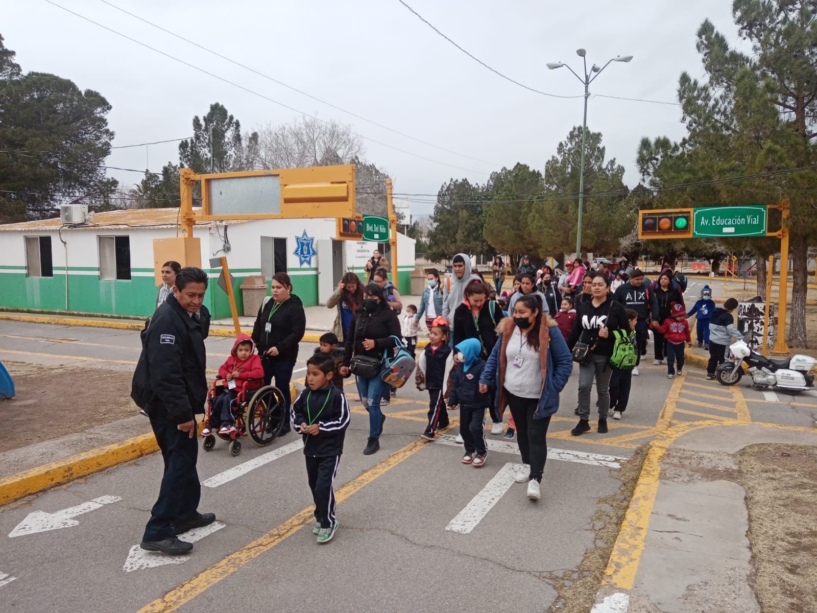 Agentes de la Coordinación General de Seguridad Vial recibieron en las instalaciones de la Mini Ciudad Vial a 41 menores, 40 padres y madres de familia, así como a cinco maestros del Jardín de Niños Emiliano Zapata, quienes llegaron al lugar con el objetivo de conocer y aprender jugando sobre el tema de la seguridad vial.