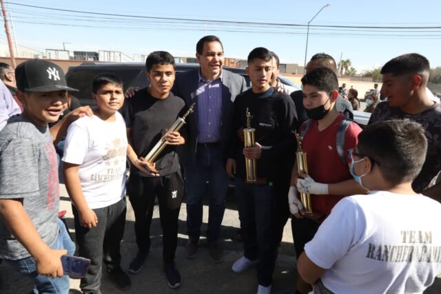 El alcalde encabezó la entrega de reconocimientos a los jóvenes que participaron en el encuentro boxístico que se desarrolló esta mañana en la colonia Azteca. Acompañado de su esposa y titular del DIF Municipal, Rubí Enríquez y de la directora general de Centros Comunitarios, María Antonieta Mendoza Mendoza, el alcalde felicitó a los jóvenes que diariamente entrenan box en los distintos centros comunitarios.