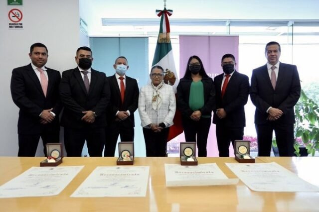 Fueron cuatro suboficiales y una subagente de la Guardia Nacional comisionados a la CONASE, órgano administrativo desconcentrado de la Secretaría de Seguridad y Protección Ciudadana (SSPC), quienes recibieron la presea del legislativo capitalino, que incluye un reconocimiento con la leyenda: “Por su valentía y heroica defensa de los ciudadanos”.
