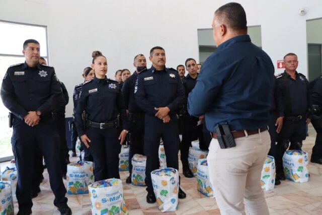 El secretario de Seguridad Pública Municipal, César Omar Muñoz Morales, realizó la entrega de un estímulo económico y una despensa básica a elementos municipales que se destacaron como policías del mes de mayo.