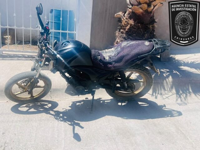Elementos de la Agencia Estatal de Investigación (AEI) recuperaron una motocicleta marca Italika, línea ZW125, modelo 2018, de color negro, que contaba con reporte de robo interpuesto el 30 de abril del año en curso, en la ciudad de Parral.